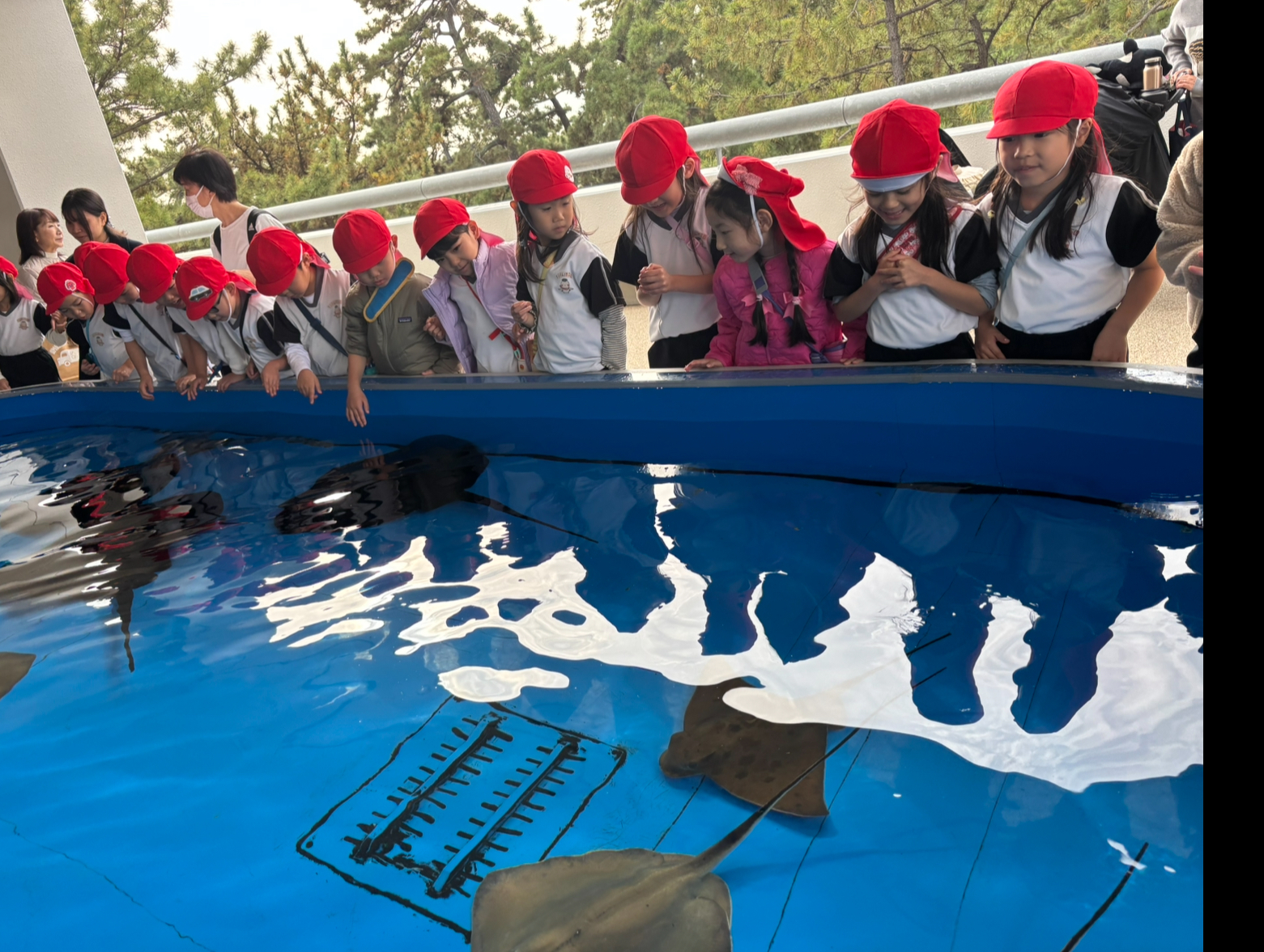 ふれあいコーナーでは、エイやサメに触ることが出来ました。「ヌルヌルしてる!」や「柔らかくて可愛い!」と言う子も居れば、「怖くて触れない!」と反応は様々でしたが、良い一日になったと思います😊