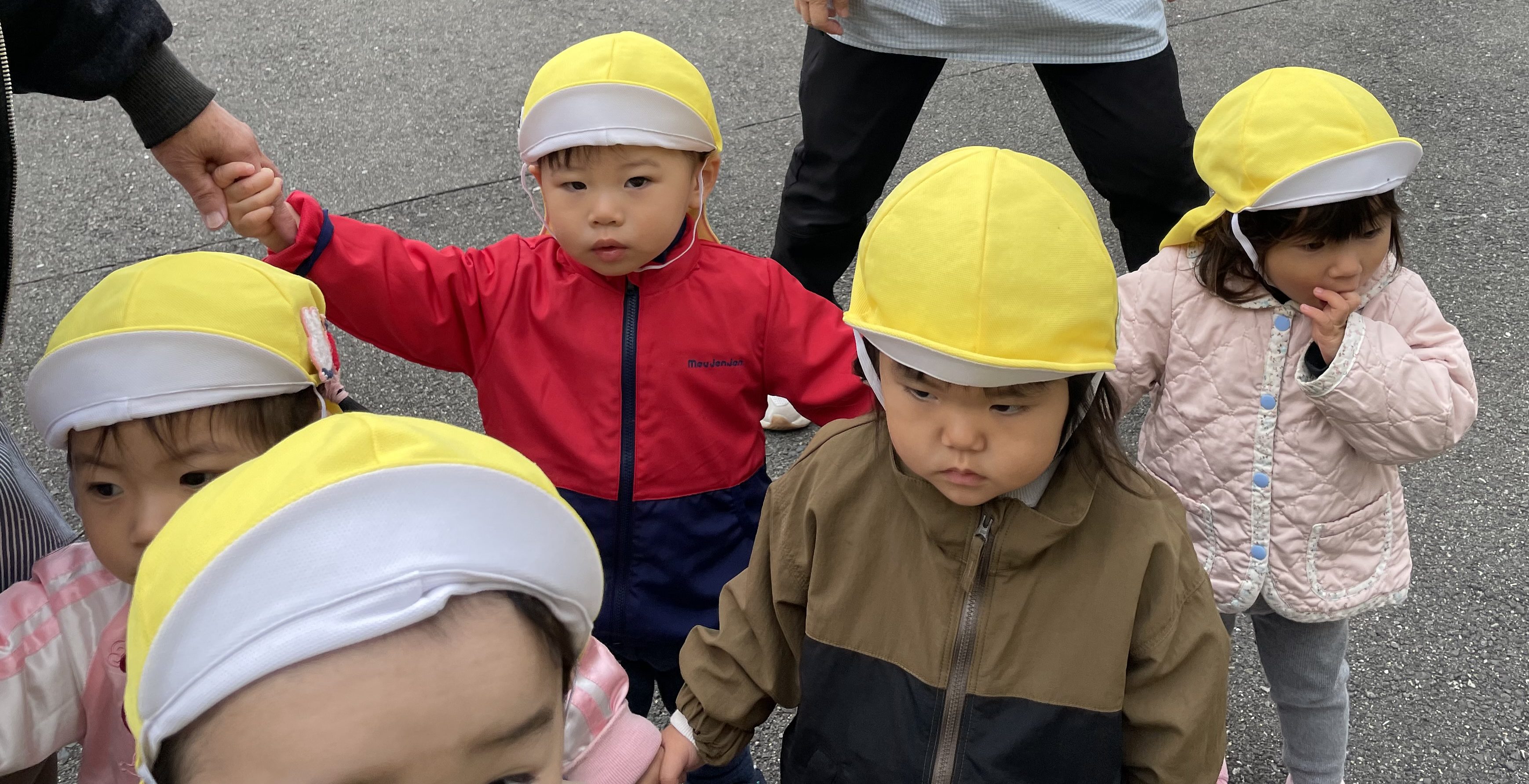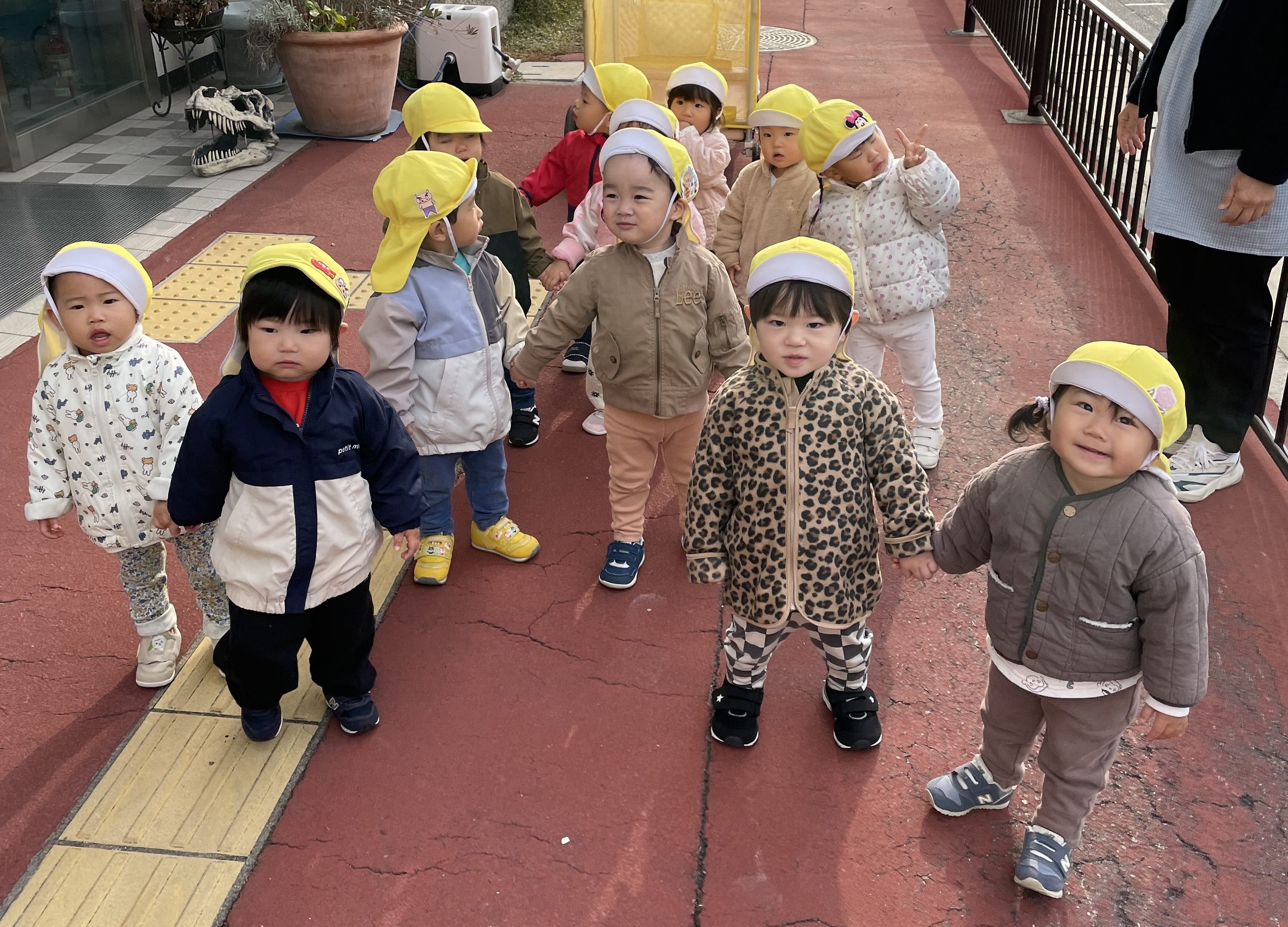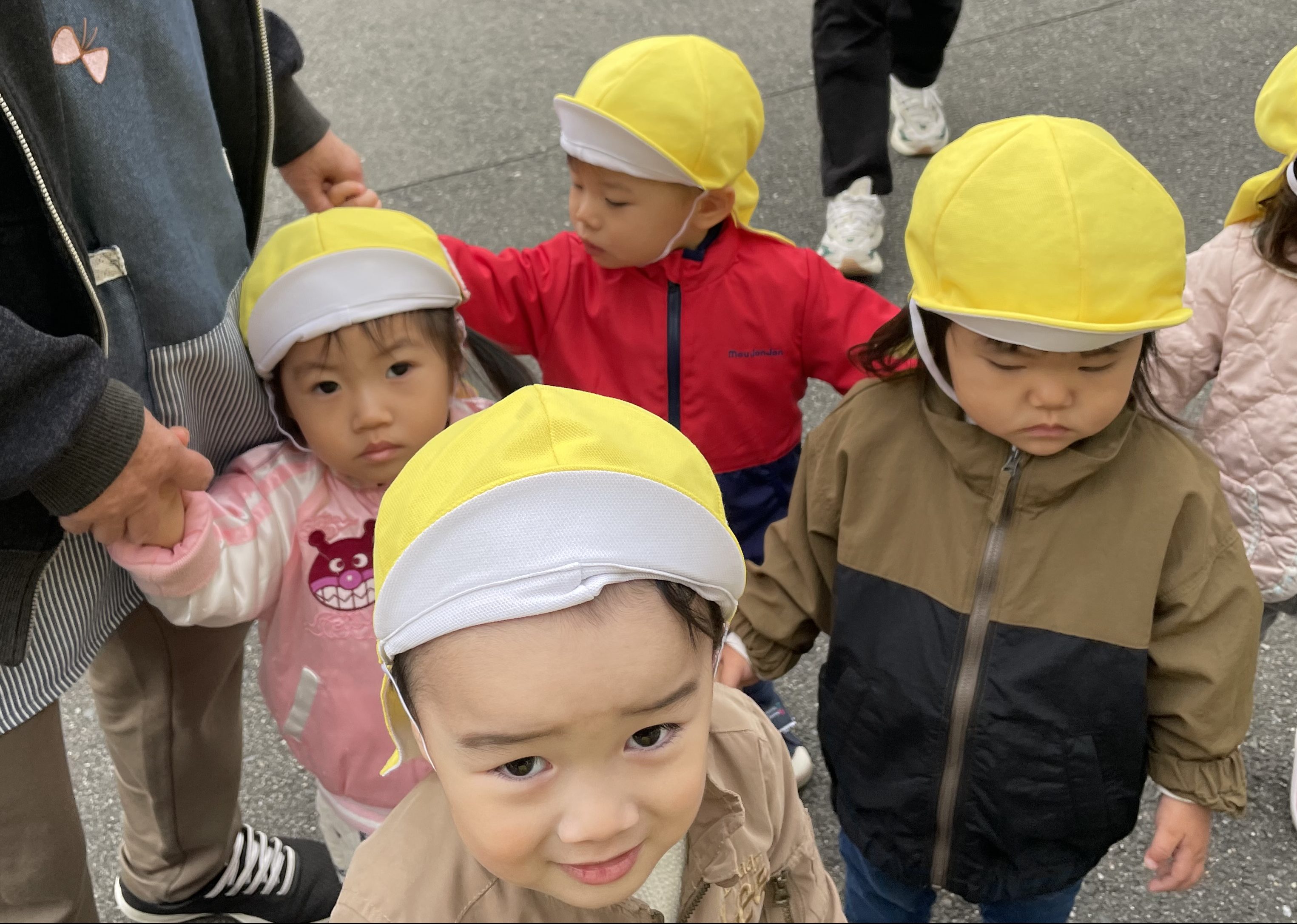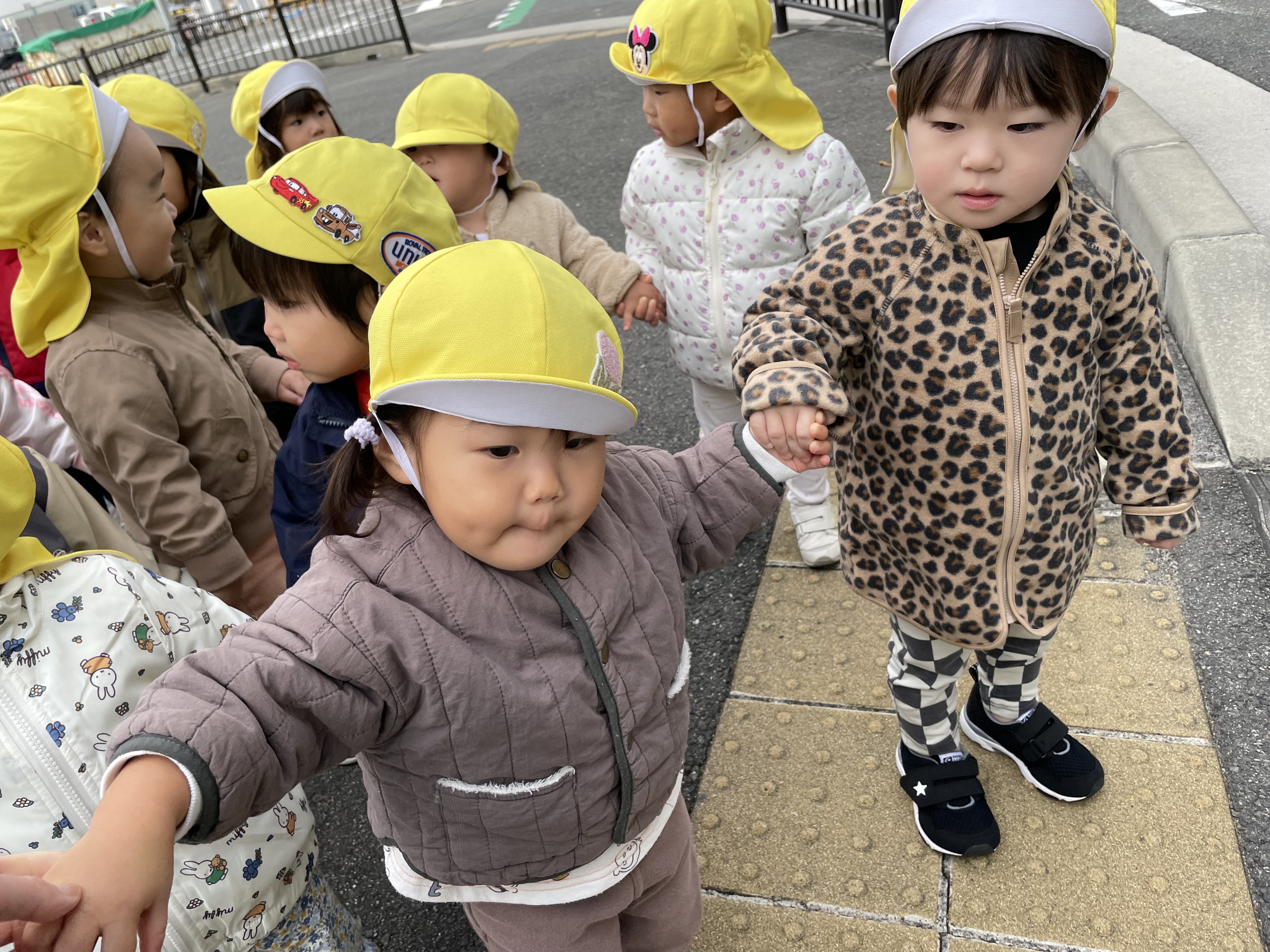 お友だちと手を繋いで、さぁ出発‼️少し距離がありますが、元気いっぱい歩いています!!
