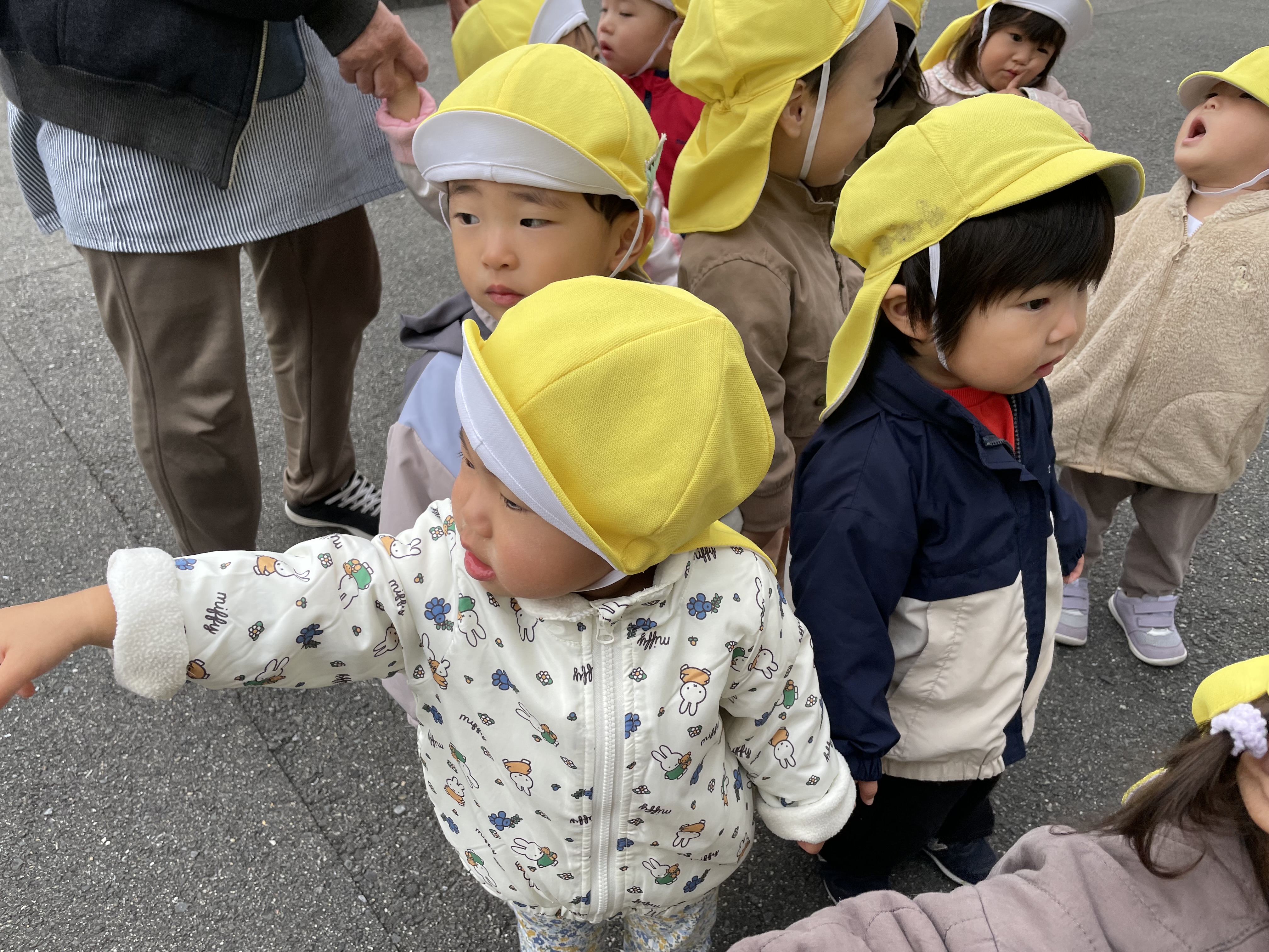 歌を歌ったり周りのものに興味を示したりしながら、頑張って歩いていました!