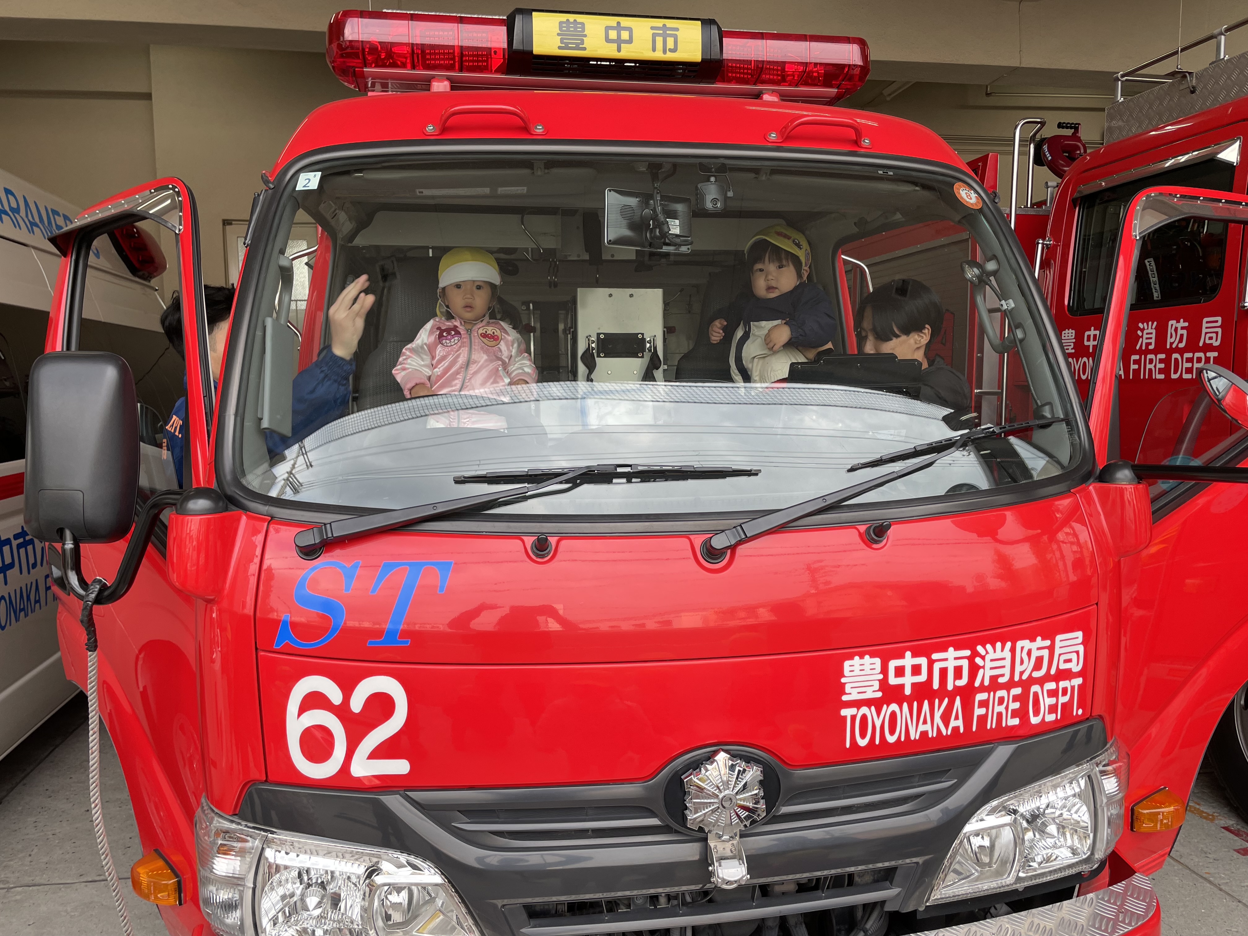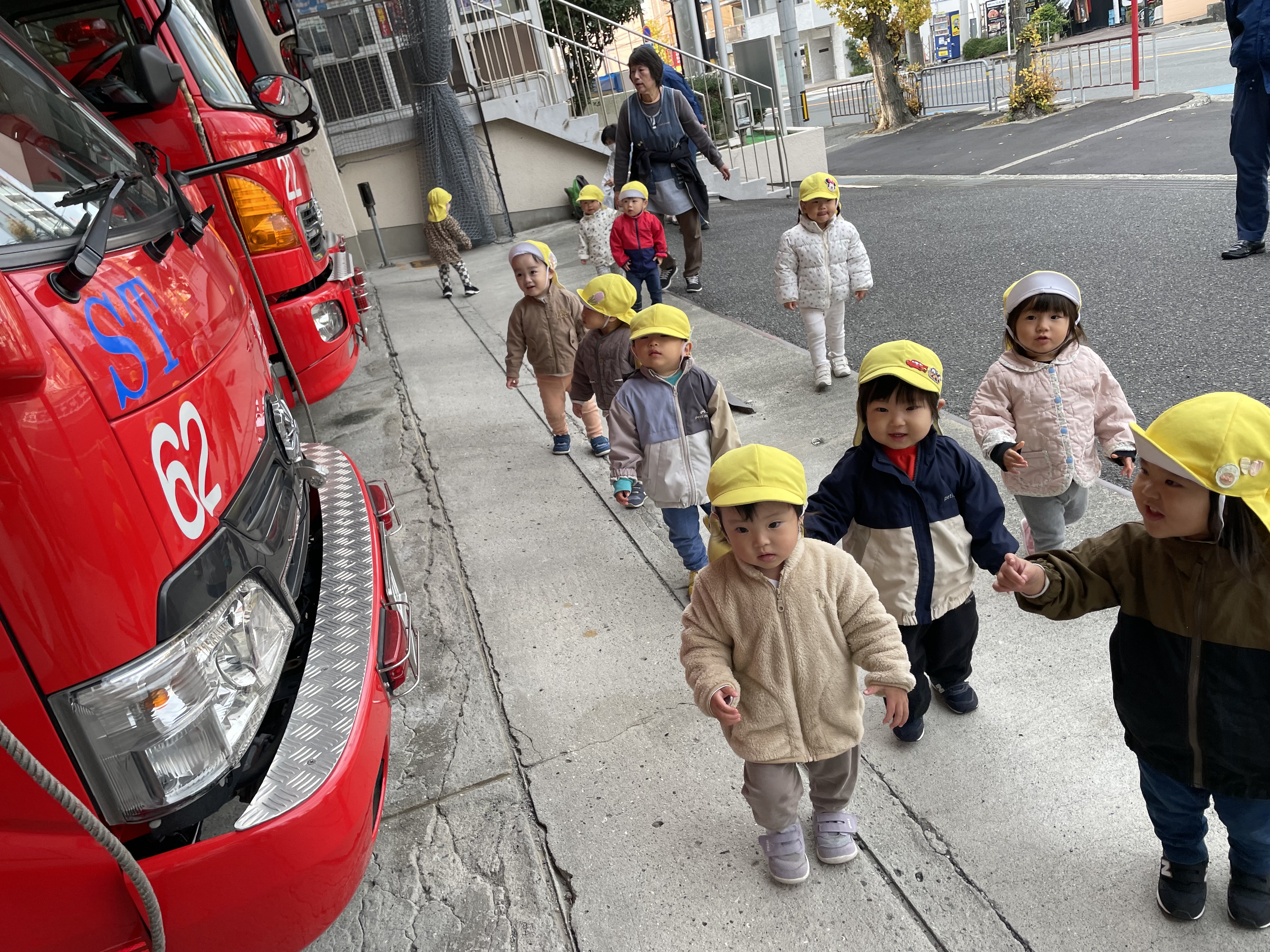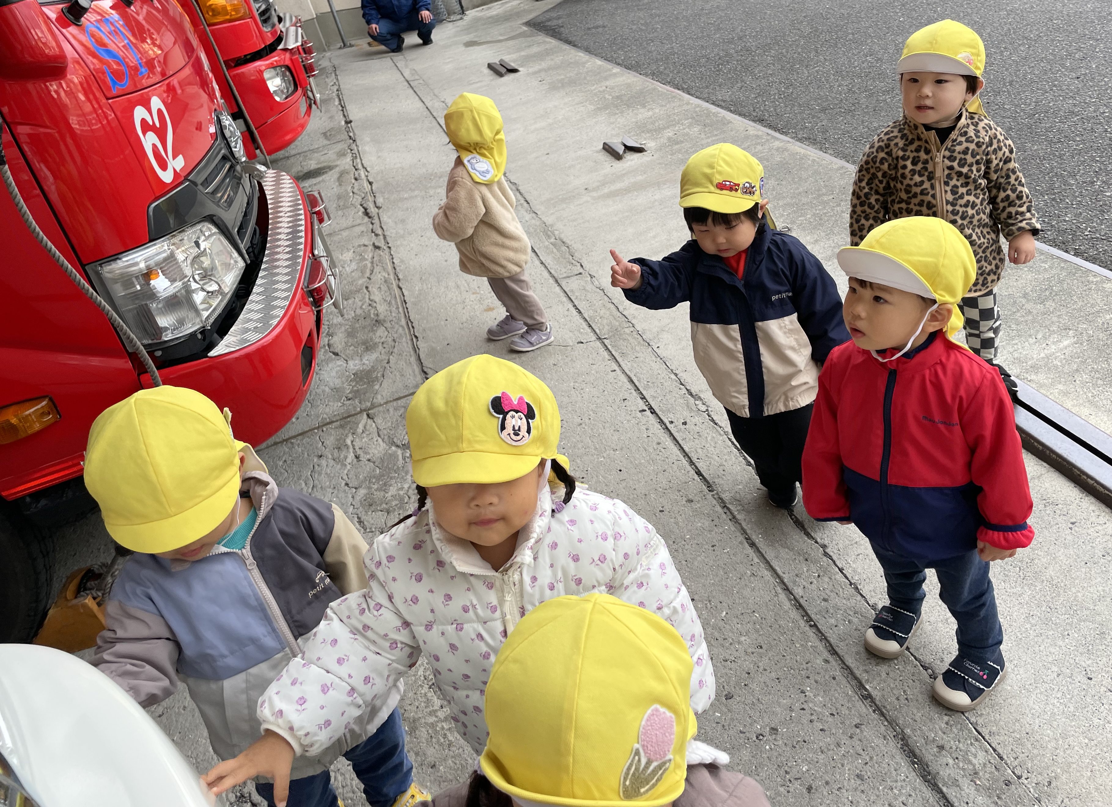 ランプを光らせ、サイレンを鳴らして出動する救急車を見送ることができて、嬉しそうなつき組さんでした!