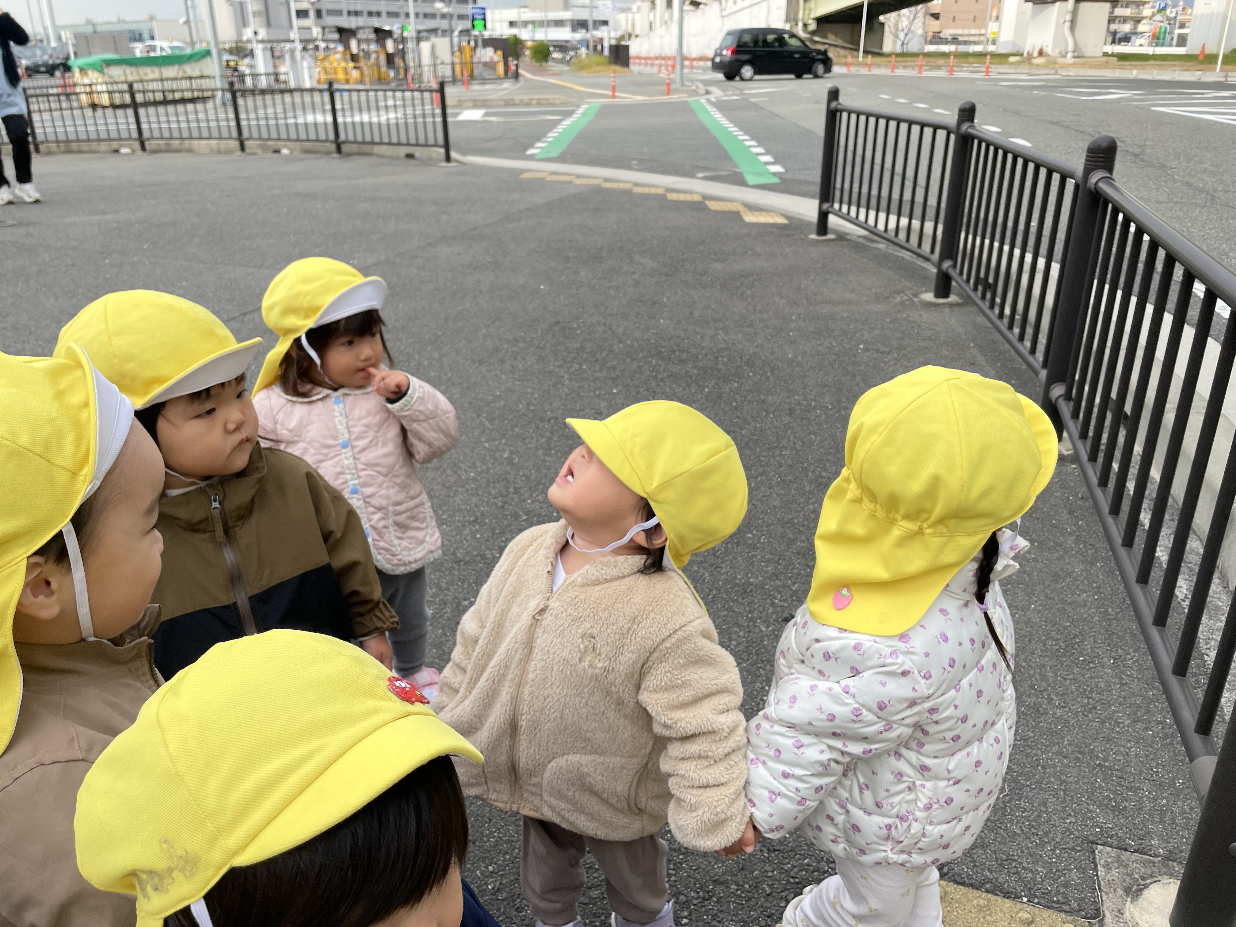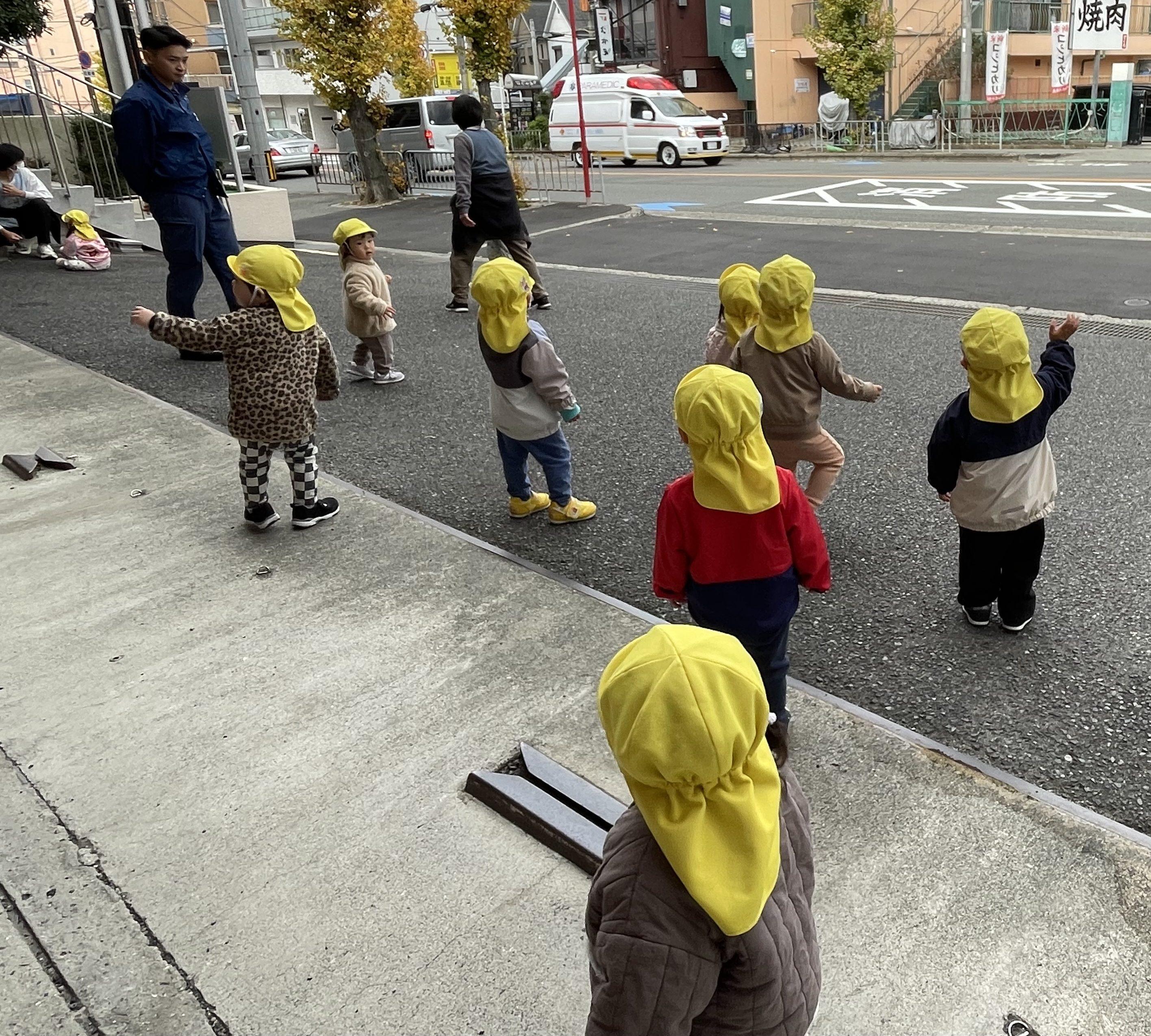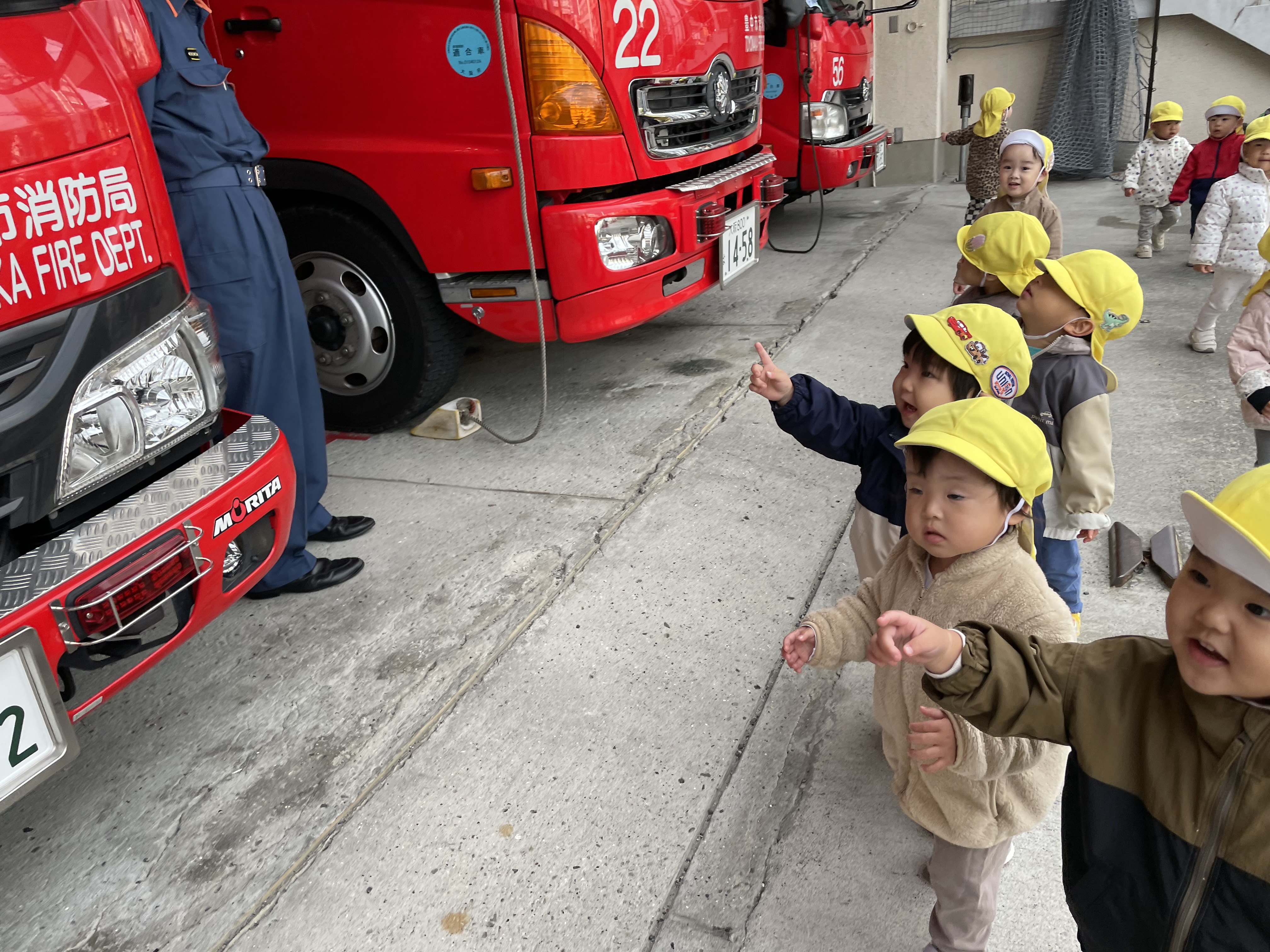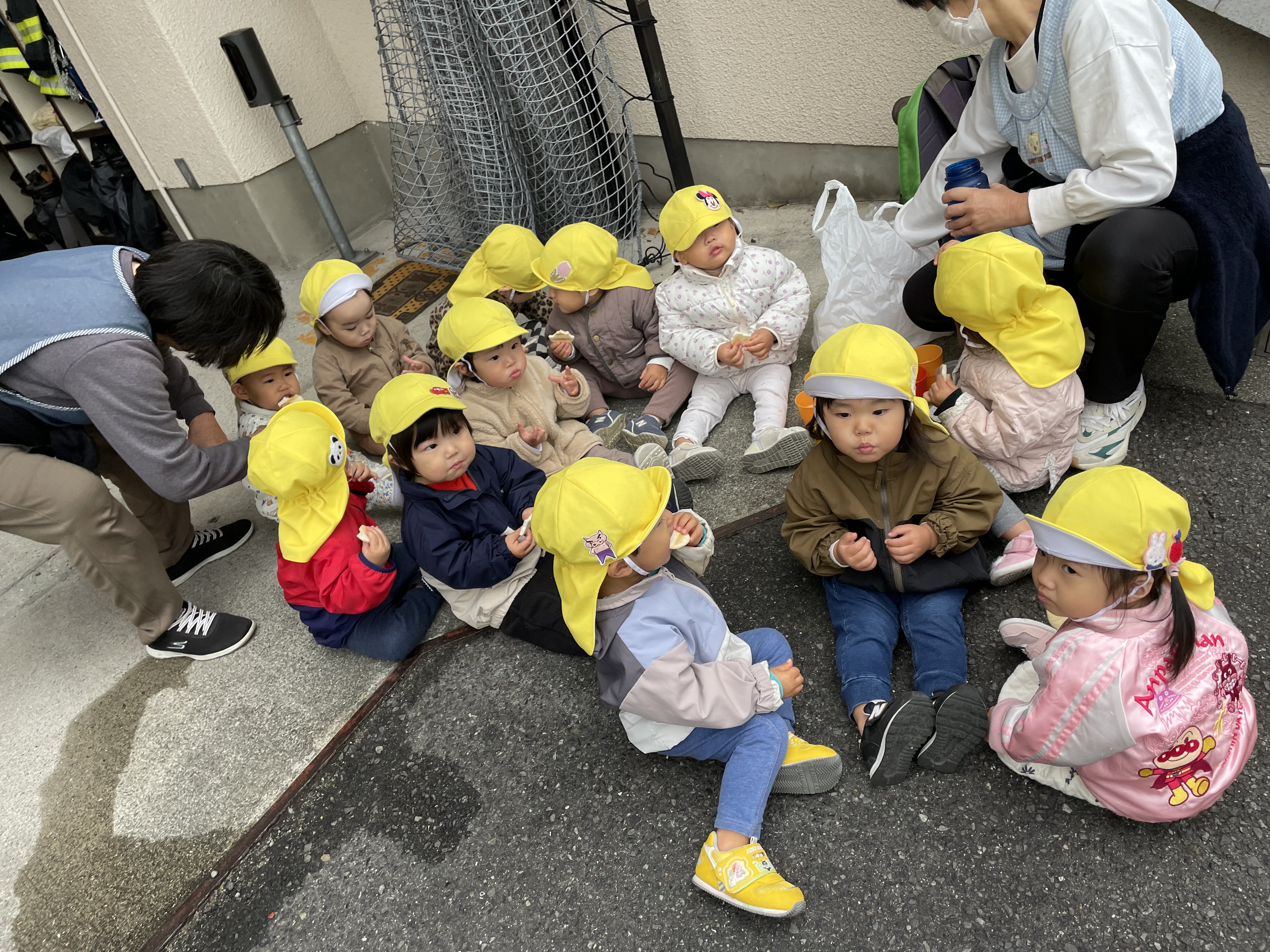 ランプを光らせ、サイレンを鳴らして出動する救急車を見送ることができて、嬉しそうなつき組さんでした!
