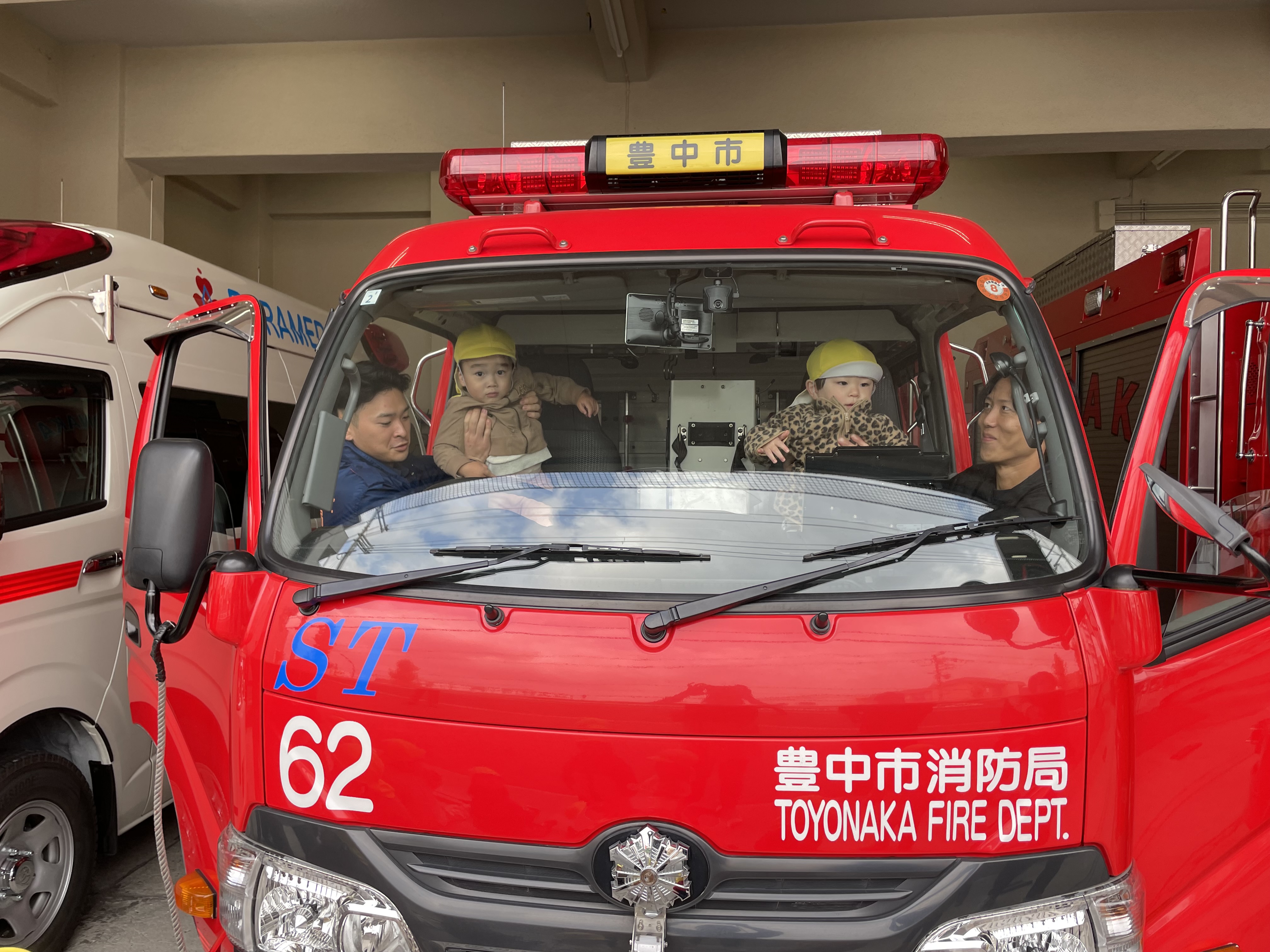 見学をさててもらっていると、消防士さんが、『乗ってみる?』と言ってくださったので、乗せてもらうことに!!