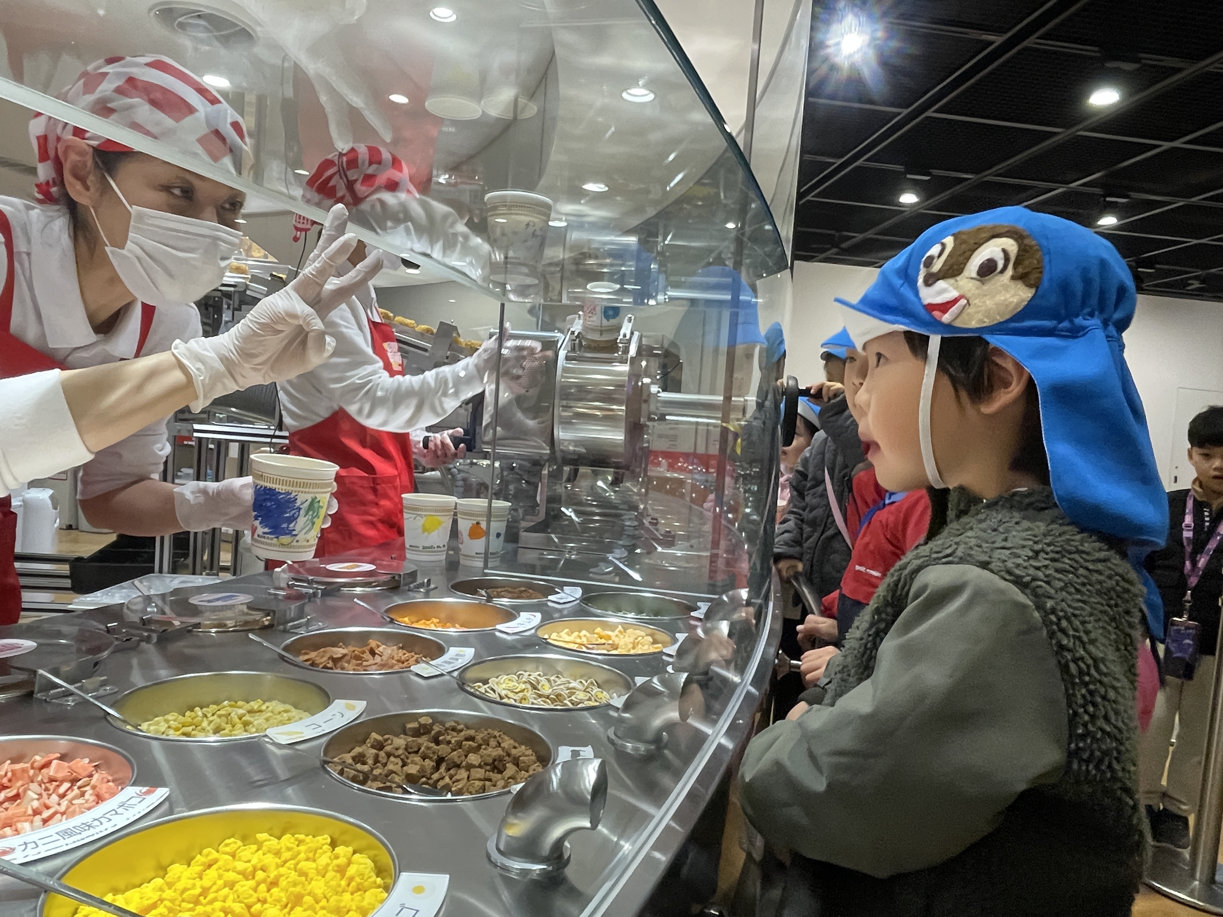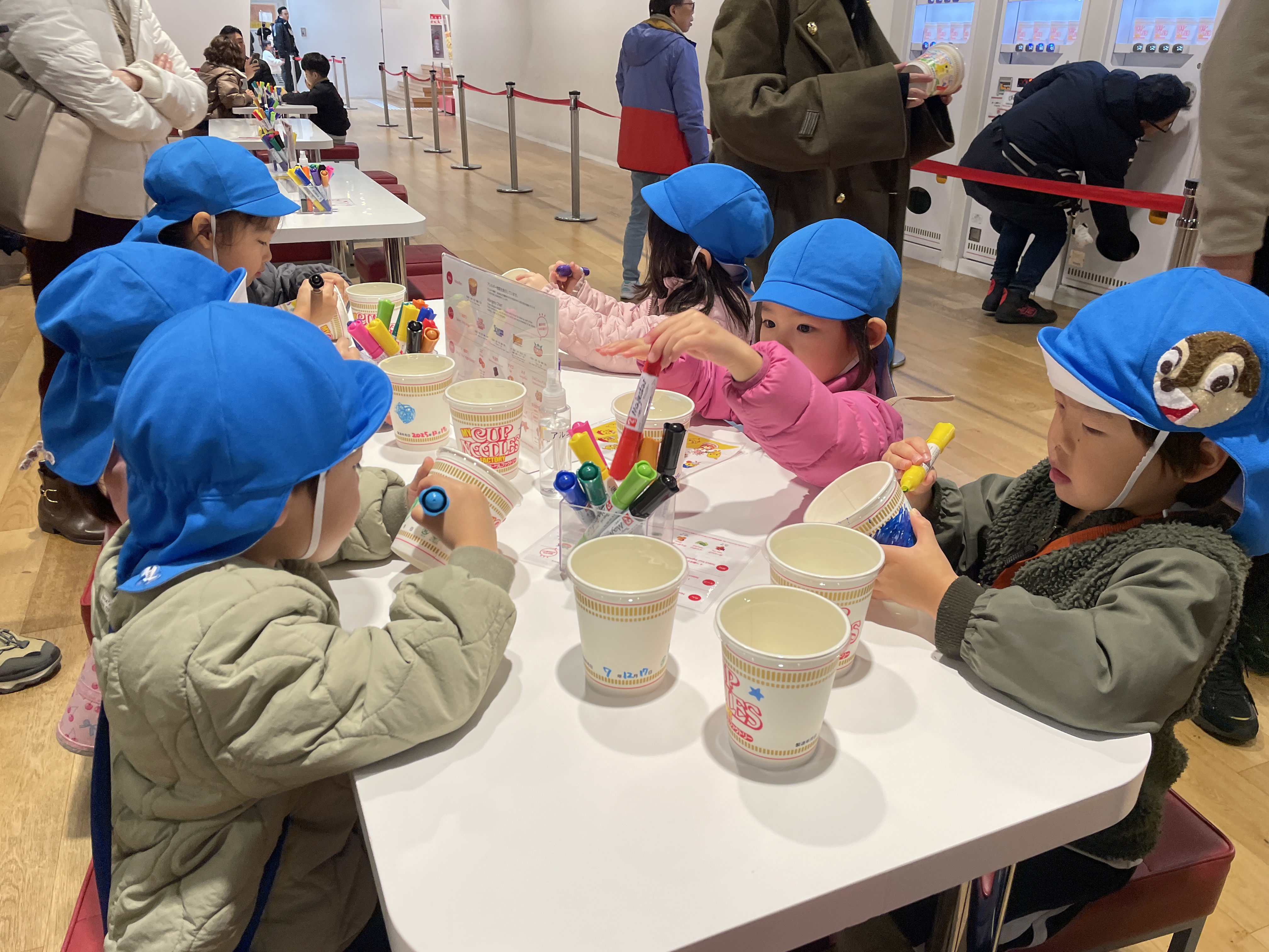 カップが出来上がったお友だちから味やトッピング選び🍴自分でセレクトして自分だけのカップラーメンを作り大満足な様子でしたよ💕