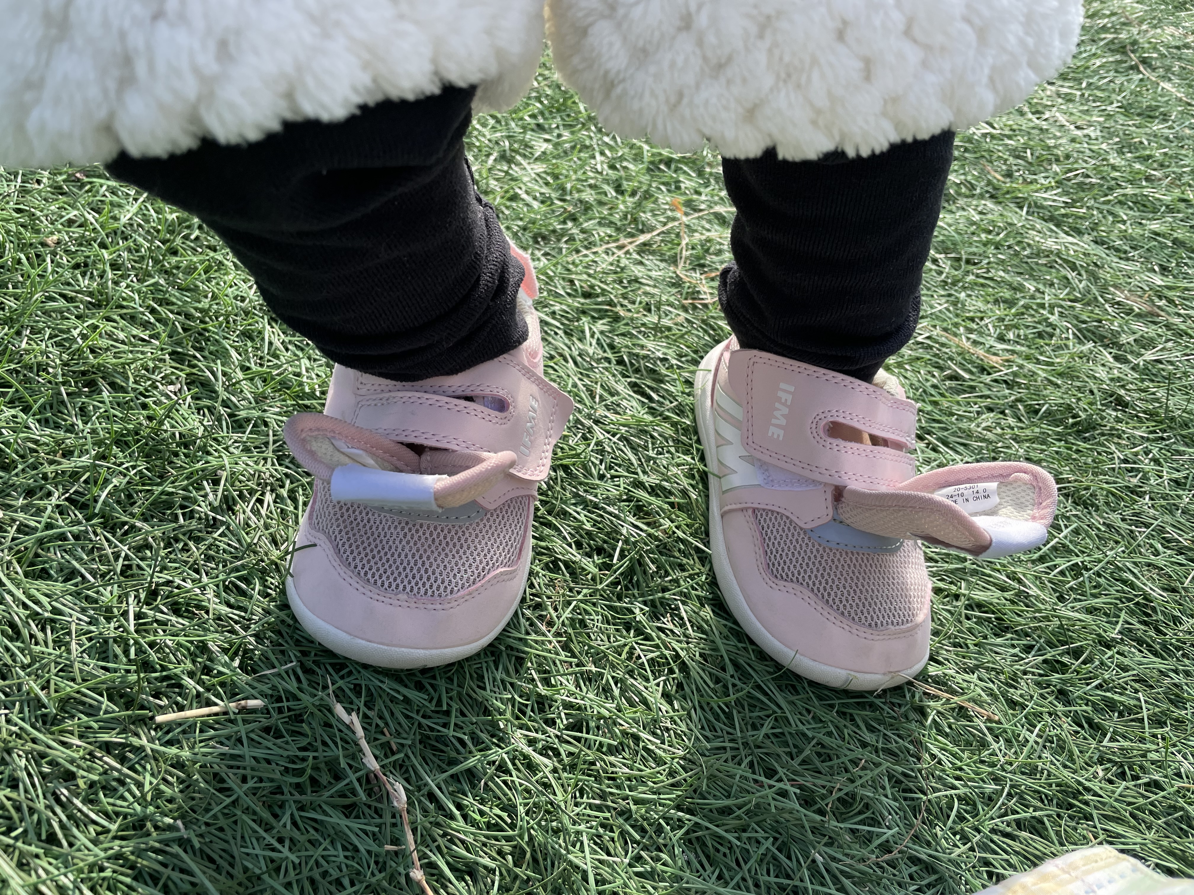 左右が反対になったり、マジックテープがしっかり止まらなかったり…と言うことは多々ありますが、自分で履けたよ!ということが自信につながるといいなと思って見守っています♪