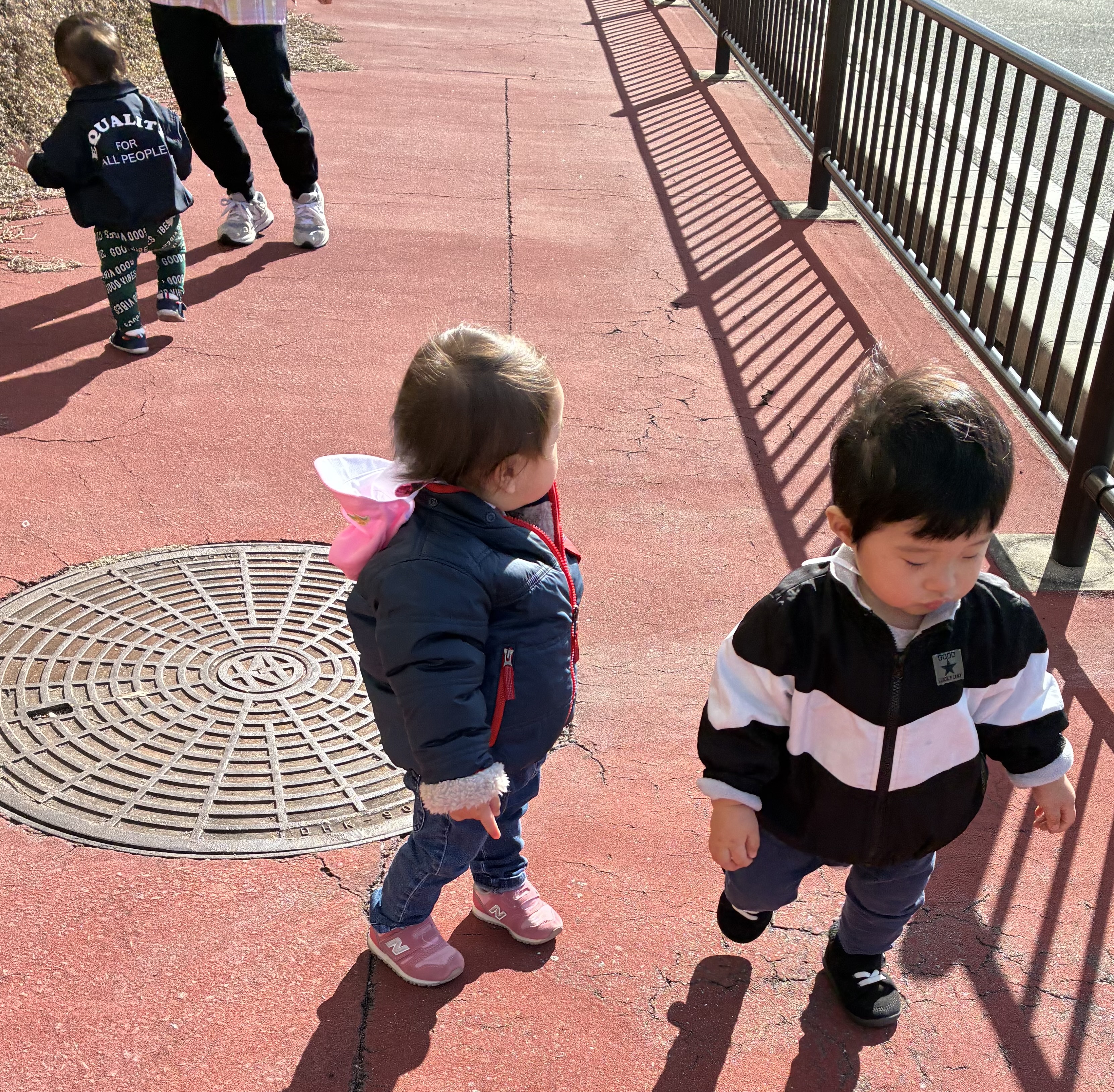 2026.01.06 散歩に行きました ゆきぐみ🌸 🎍あけましておめでとうございます🎍 今年も元気にゆきぐみさんスタートです✨ お休みの間、みんな元気に過ごせたようで安心しました☺️ 少し見ない間に子ども達の成長がすごく、保育者もびっくり!! 来月には発表会があります。保護者の皆さんに子ども達の成長をみて頂きたいと今からワクワクしています♪ お楽しみに👍 さて、今日は少しだけ散歩に出掛けました。 いつも開かない扉が開いたので恐る恐る出て行く子ども達 休憩🤪 靴も上手に脱げますよ✨ 今年もたくさん遊ぼうね👋 PREV NEXT