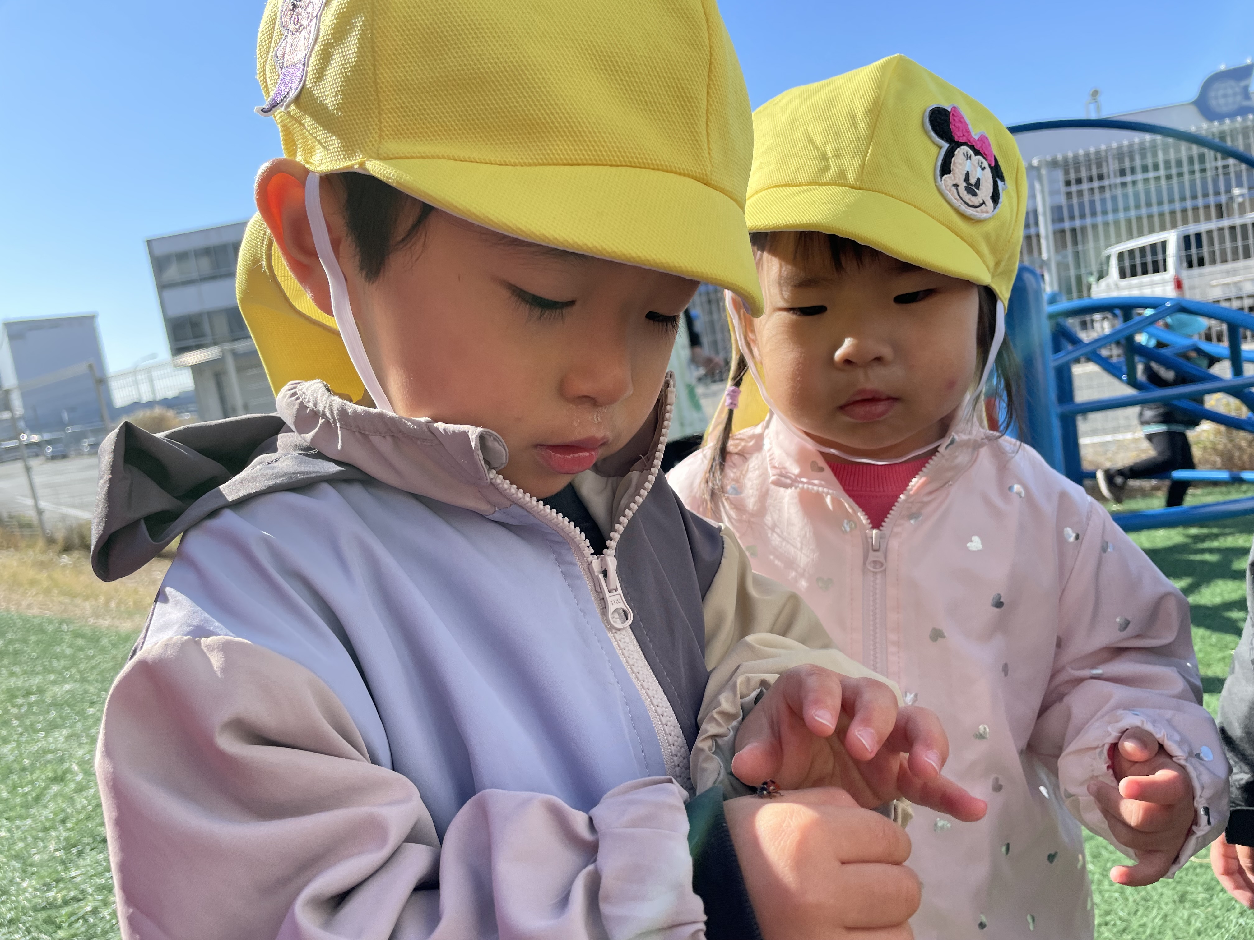 てんとう虫🐞を発見し、みんな興味津々でした!