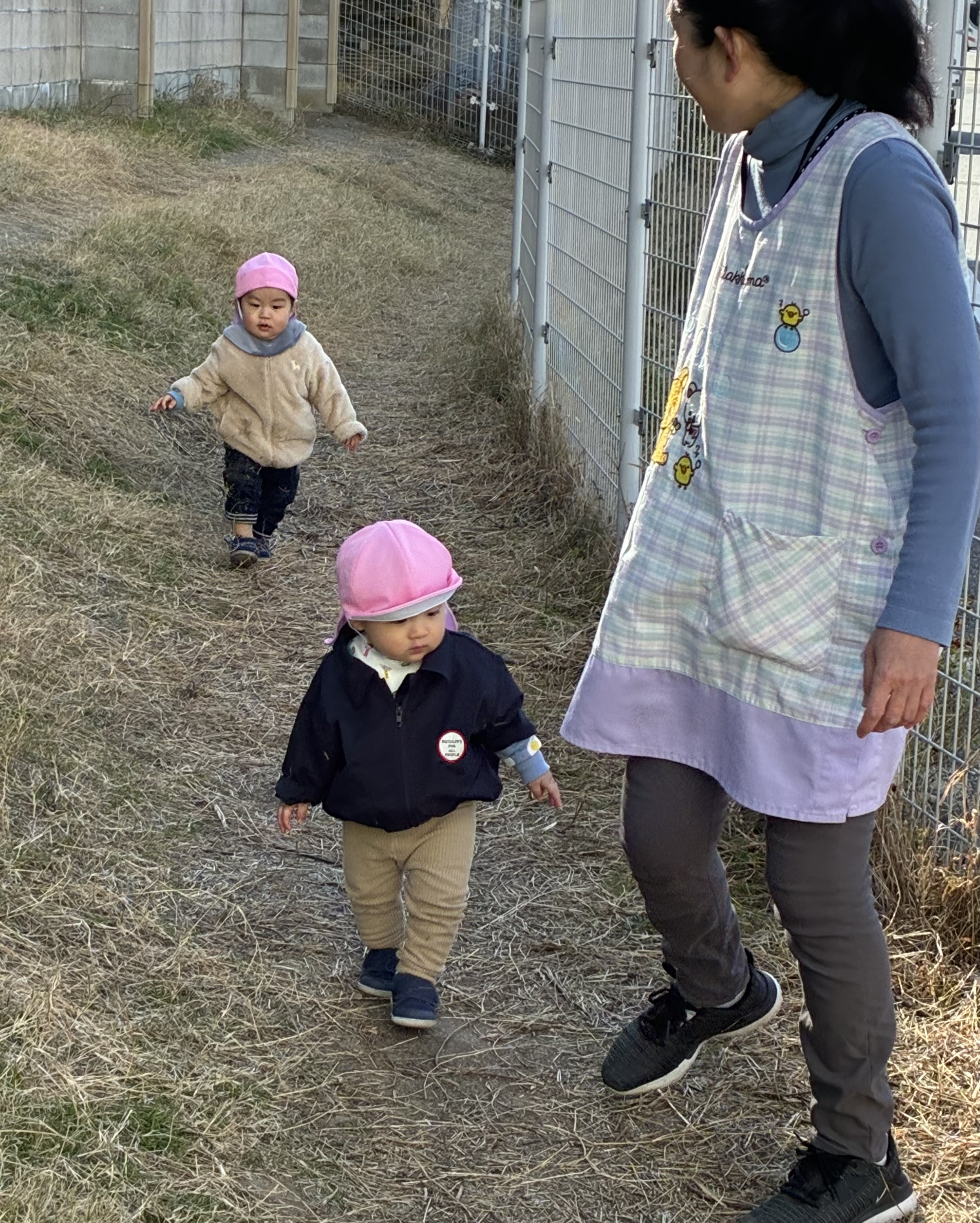 園庭では保育者と追いかけっこ。