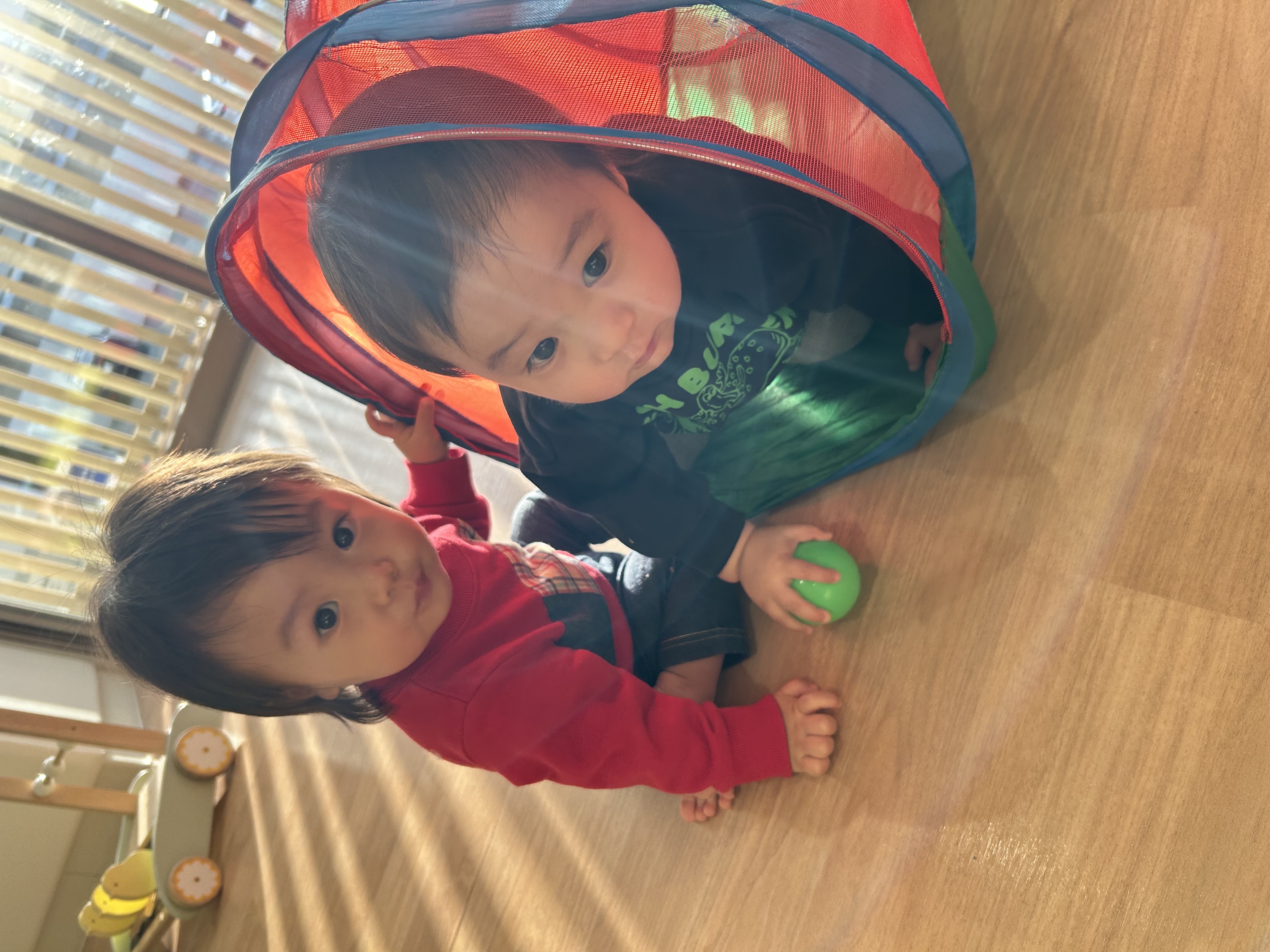 積み木を慎重に重ねてはお友だちに倒されて「あー😩」とお互い何度も繰り返していましたよ笑笑