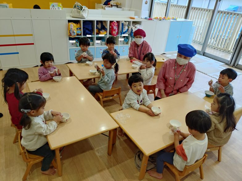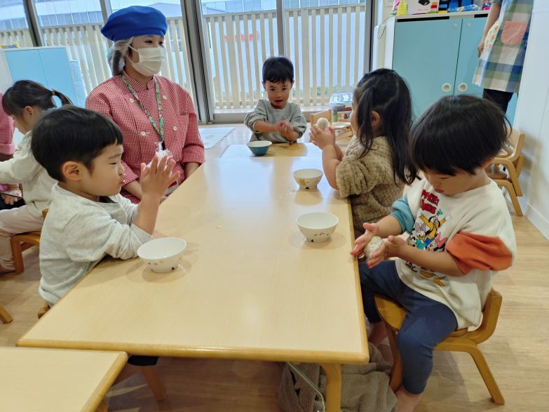 調理師の坂本さんと村上さんに来てもらい、おにぎり🍙の作り方を教えてもらいました。