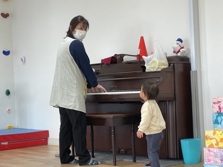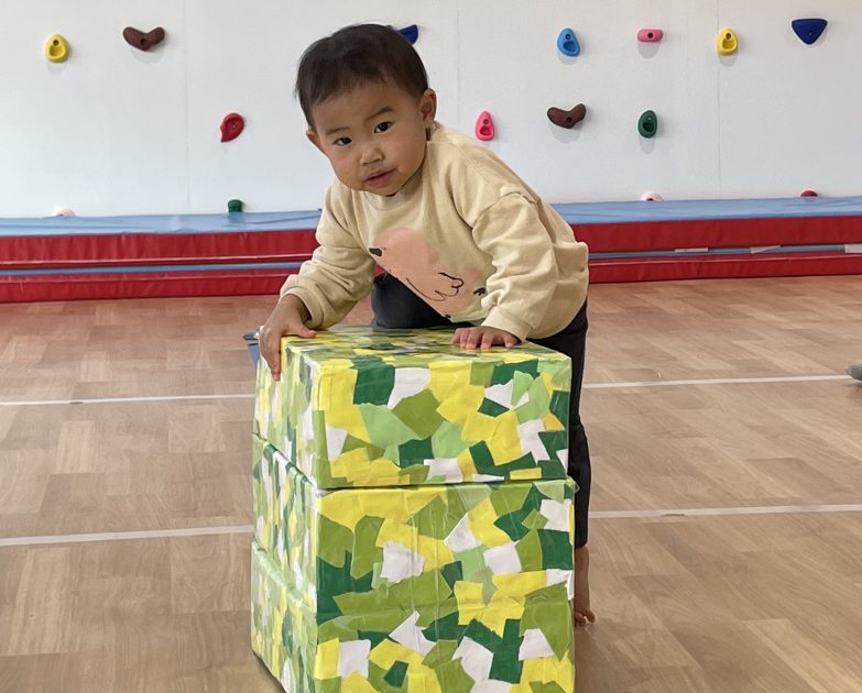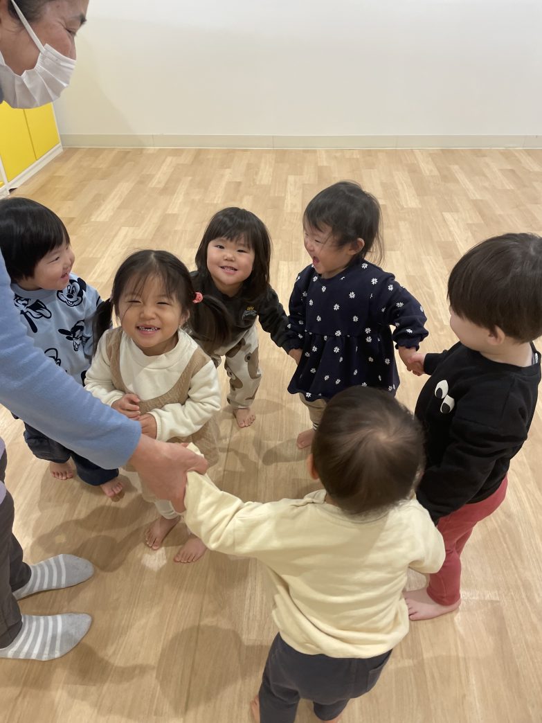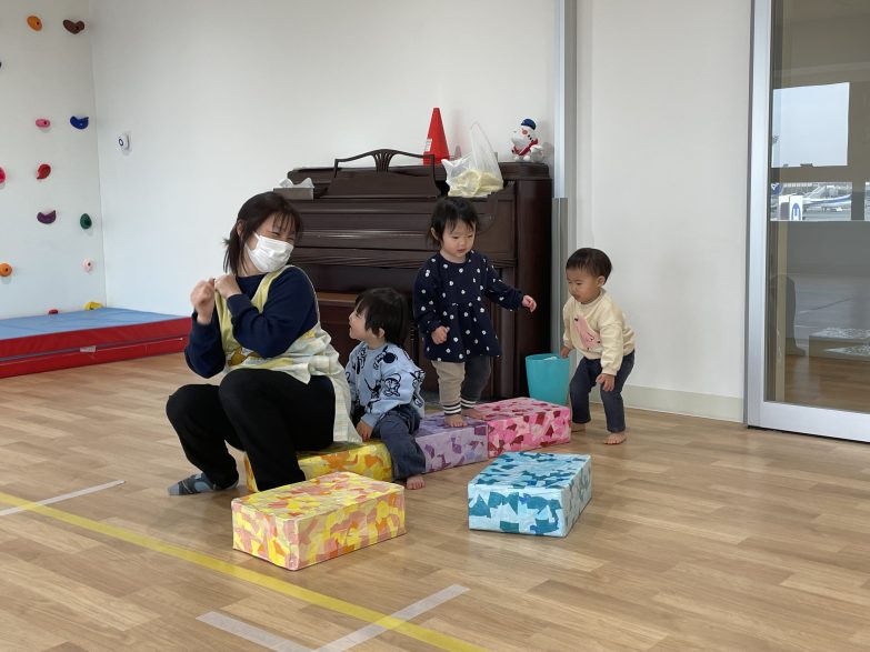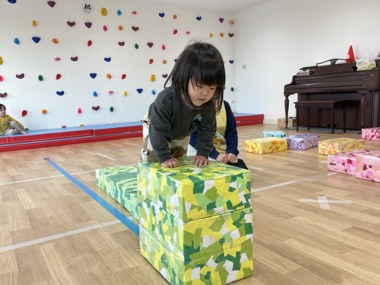 2階のホールでは少し発表会に向けての練習?劇ごっこをしました!最近までホールに行った嬉しさで走り回っていたつき組さんですが、少しずつ慣れて、走り回る時と落ち着いて遊ぶ時に気持ちを切り替えられるようになってきました☺️