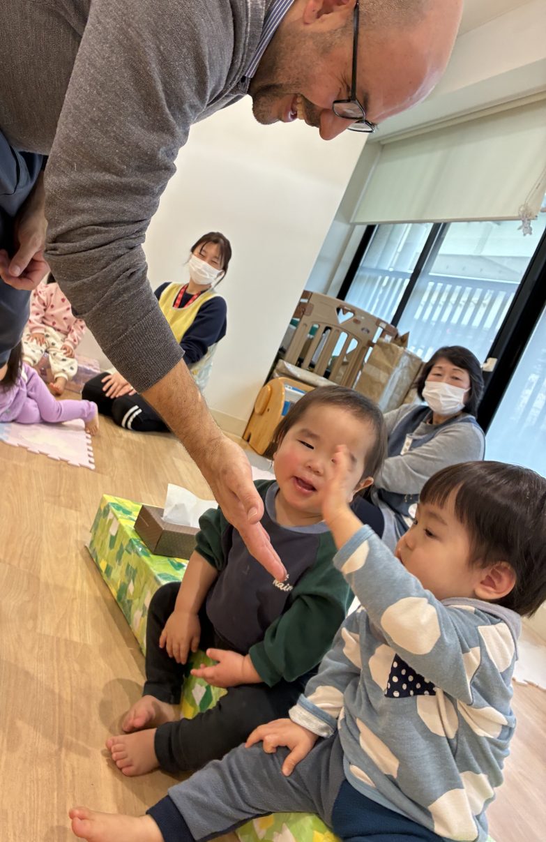 2026.02.12 探検に行きました ゆきぐみ🌸 今日のゆきぐみさんは2人っきり。なんだか、いつもキュウキュウで座っている椅子も広く感じます😔 英語の後は保育園の探検です。 普段目にしないおもちゃがたくさんあって触らずにはいられません😁ダメだよ〜と注意させています💦 テラスでお友だちが遊んでいたのでお邪魔しました✨ 今日はいろんな場所に行って疲れたね〜 いい夢見てね👋 PREV NEXT