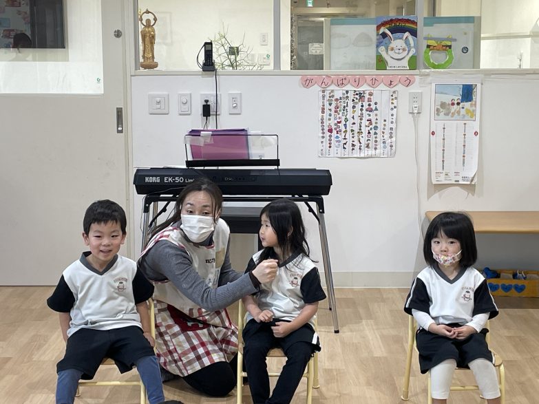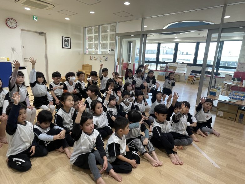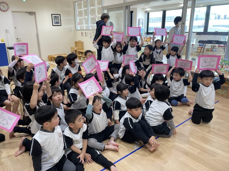 シルエットクイズでは、影の形を見て何かを想像しながら一所懸命手をあげて答えていましたよ😝カードのご褒美がとても嬉しかったようです‼️「楽しかった〜」と言って喜んでいる子もいて楽しいひと時になりました🎈
