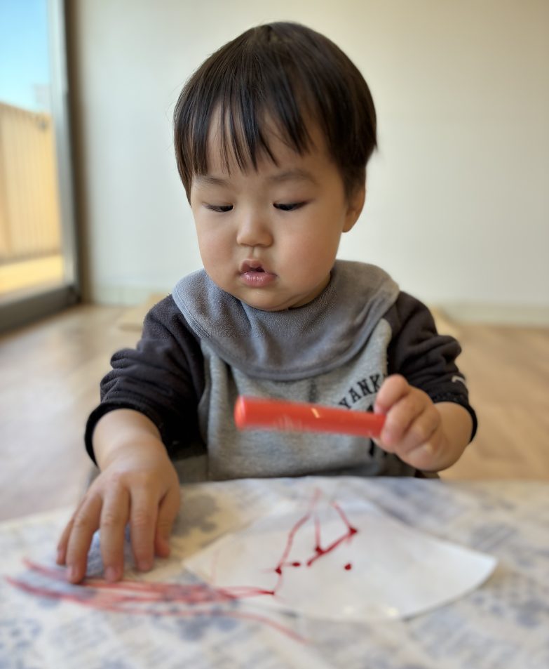 2026.02.18 お絵描き楽しいな✨ゆきぐみ🌸 ひな祭りまでもう少し。 今日はおひなさまの制作です。 おやつを食べて、ひと遊びすると制作に集中!! 上手にペンを持って、時には自分の手に描いたりしながら完成✨ でもまだ描き足りないよなので、急遽紙を用意。色を次々と変え、楽しそうにグルグル🌀顔には描きません様に‥🤭 ※石鹸では落ちませんでした💦お父さんお母さんごめんなさい🙇♀️ 手にいっぱい色を付けて園庭へ。 たくさんおかわりして満腹🫃満腹🫄 また明日も元気に遊ぼうね👋 PREV NEXT