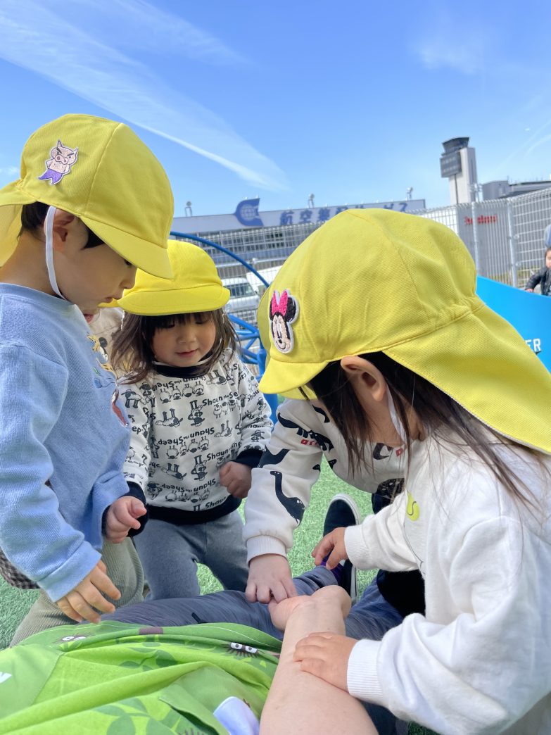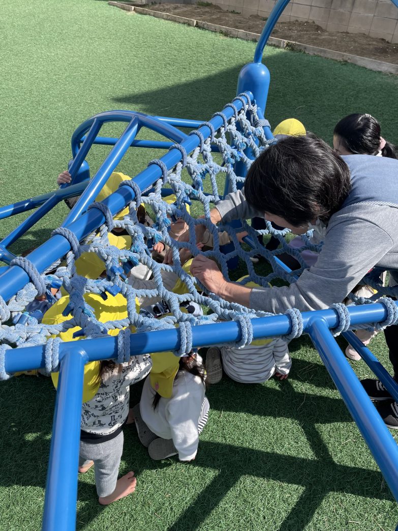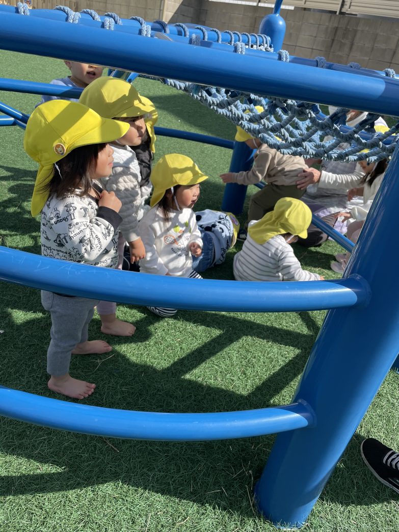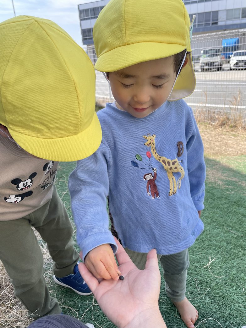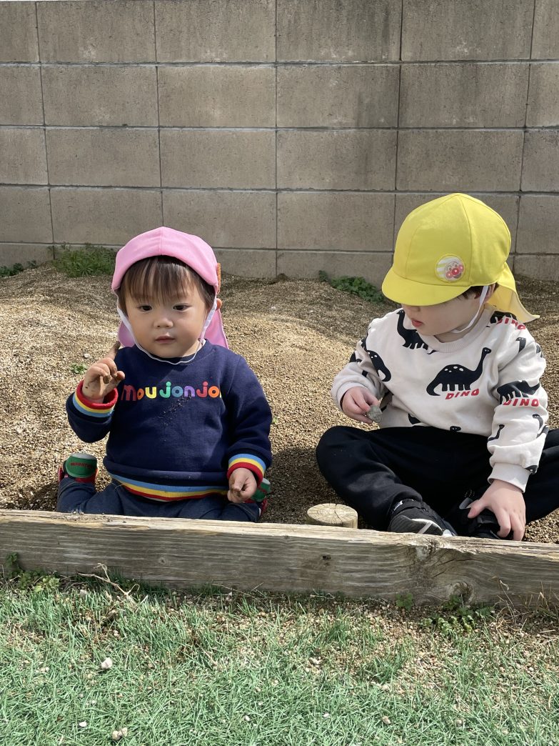 今日は子ども達も元気で天気も晴れていたので園庭に行き遊びました。追いかけっこやダンゴムシ探しなど楽しく過ごしました。
