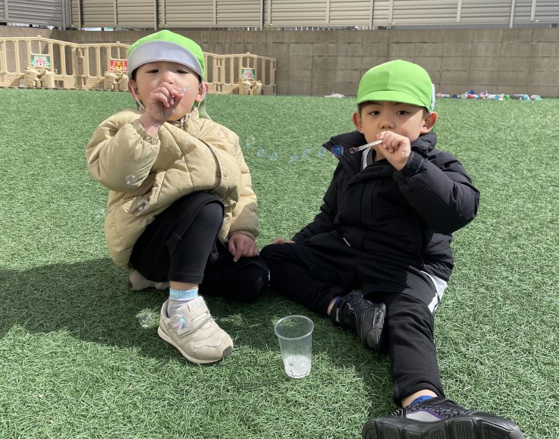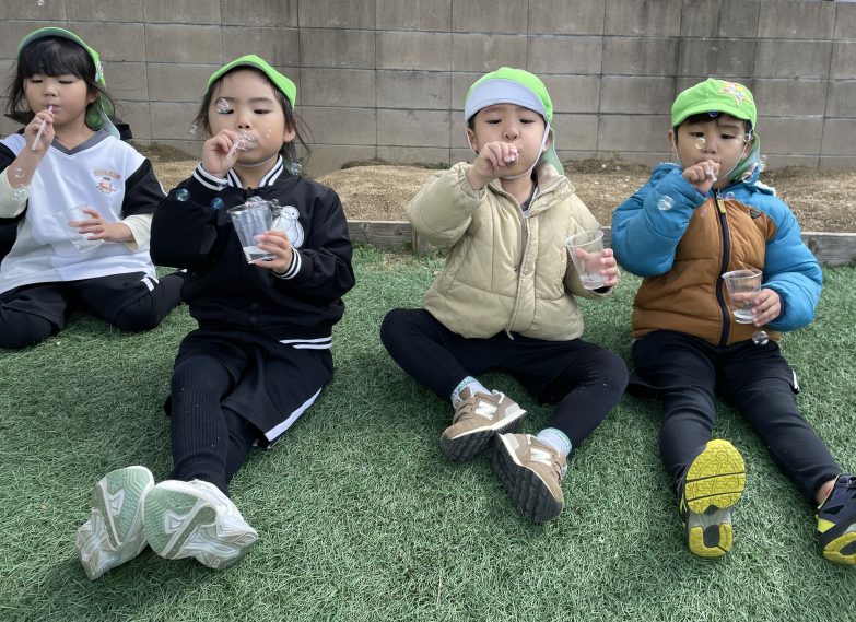 シャボン玉をしたり、虫探しに夢中な子ども達です☺️
