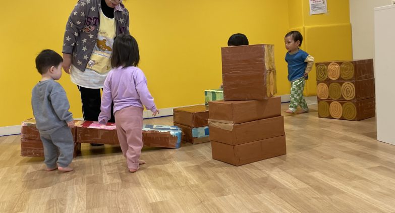 箱積み木を並べて遊ぶ子ども達もいましたよ