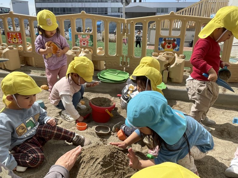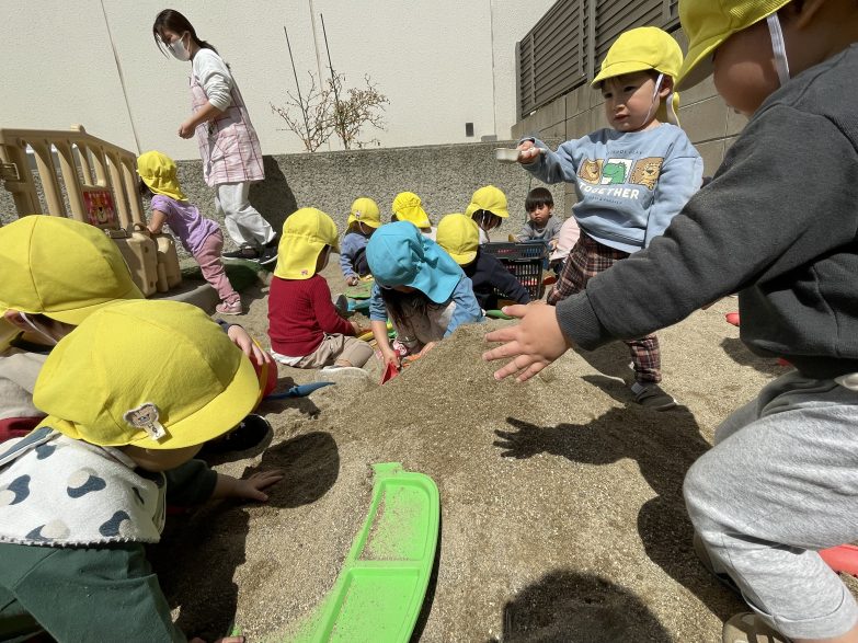 園庭では砂遊び。みんなで大きなお山を作っていましたよ🗻