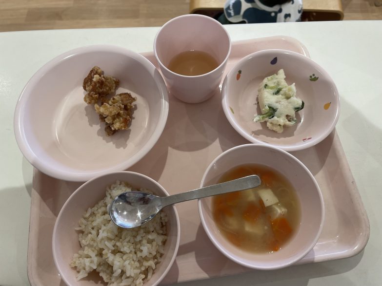給食はから揚げ‼️いっぱい食べていましたよ😋